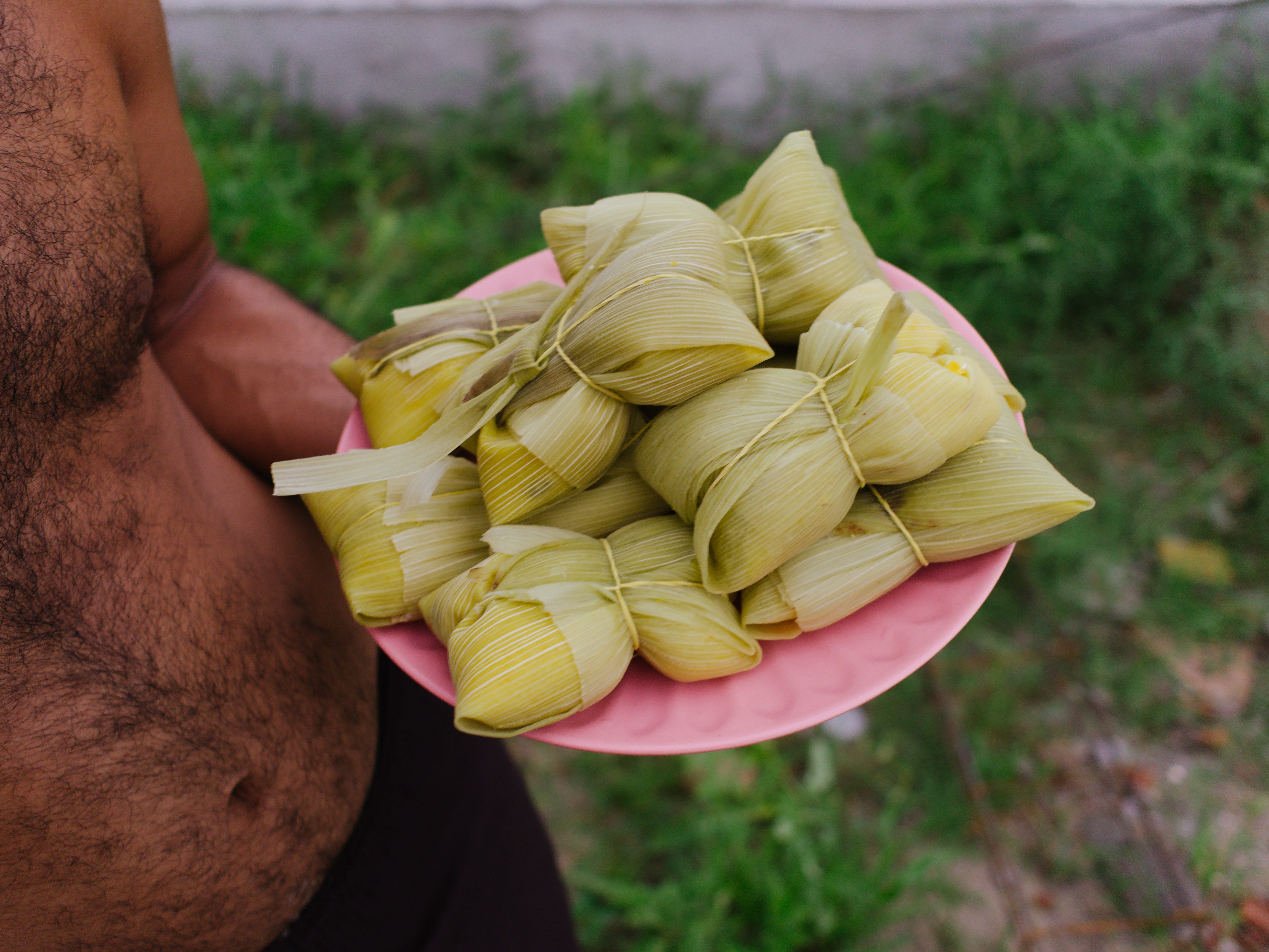 My husband’s mother, Rosania, taught me how to make pamonha, a speciality of Goiás, the region where she (and my husband João) grew up. João fondly recalls the experience of making pamonha as a family, when everyone would be united and performing their separate tasks, chatting and drinking for hours. It’s quite a lengthy process and it was a fine reward to unwrap the pamonha after boiling and enjoy the fruits of their hard work, gathered around the table.